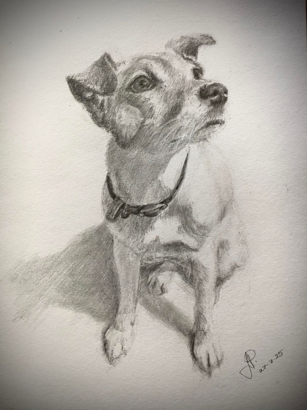 In between sorting and packing our belongings for storage, preparing for a road trip, and John’s work with planes and helicopters, he still makes time to doodle. This is Pip, a sweet four-legged we cared for in Takaka, Golden Bay, New Zealand.