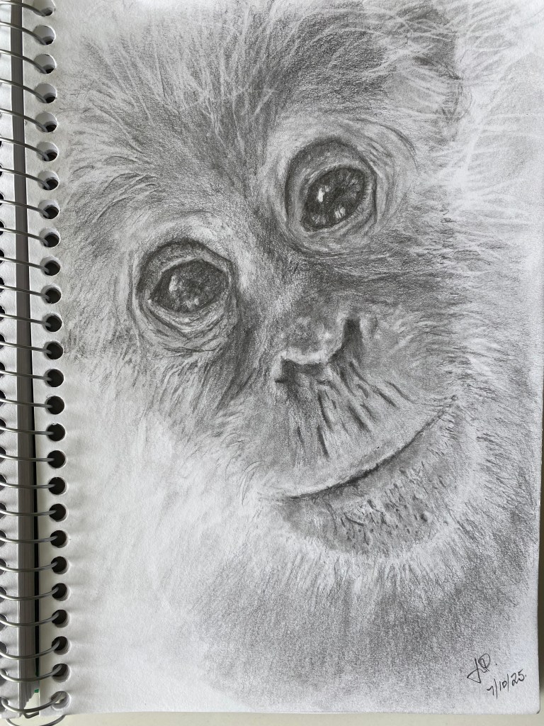 How cute is this? I love this doodle of John’s. He is also working on a portrait of an Orangutan.