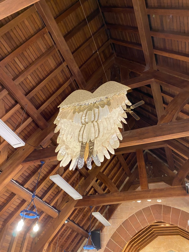 Yesterday we visited The Store@ Tai Tapu for morning coffee. After we went for a walk around the beautiful old stone library and church we discovered that they were open. Well, they had actually been open for a tour but we were welcomed into both buildings. We met some very special people and the experience of being in both of these unique buildings, still here after the earthquake here in 2011, and of how they are lovingly maintained. Thank you to all of these people for your generosity of time and such precious interactions. And of course there were angel wings!